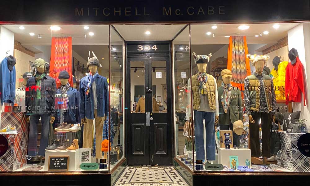 With clever styling and period fixtures, Mitchell McCabe has an atmosphere of an old-world store. Its window displays are renowned for their innovation and flair. However, part of its appeal is to blend its heritage with a modern and informed approach to fashion retailing.